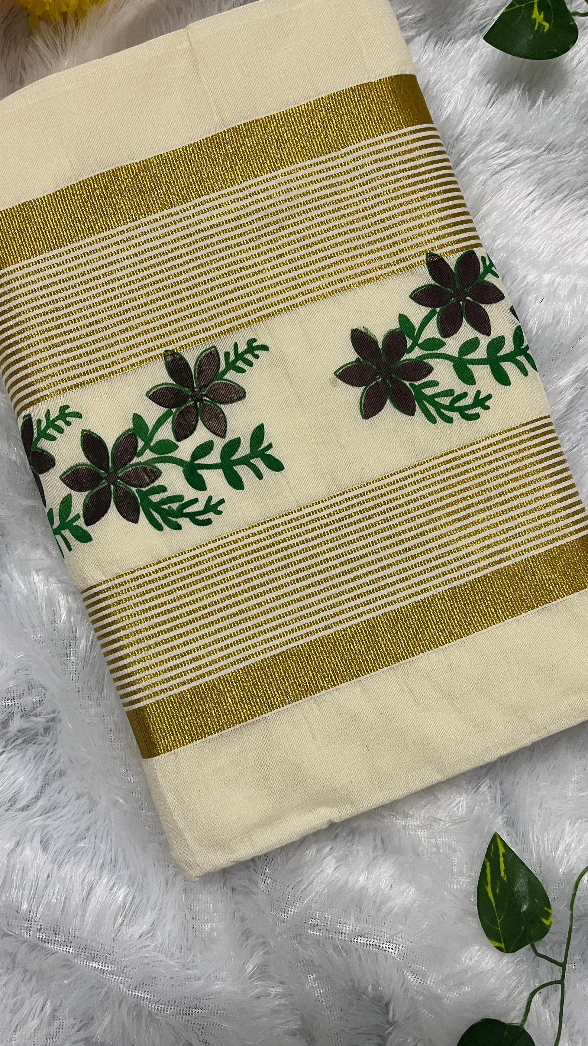 Alliyambal celebrates the beauty of the lotus in earthy brown tones. Designed in authentic Kerala handloom style, it features graceful floral motifs that add depth and elegance.