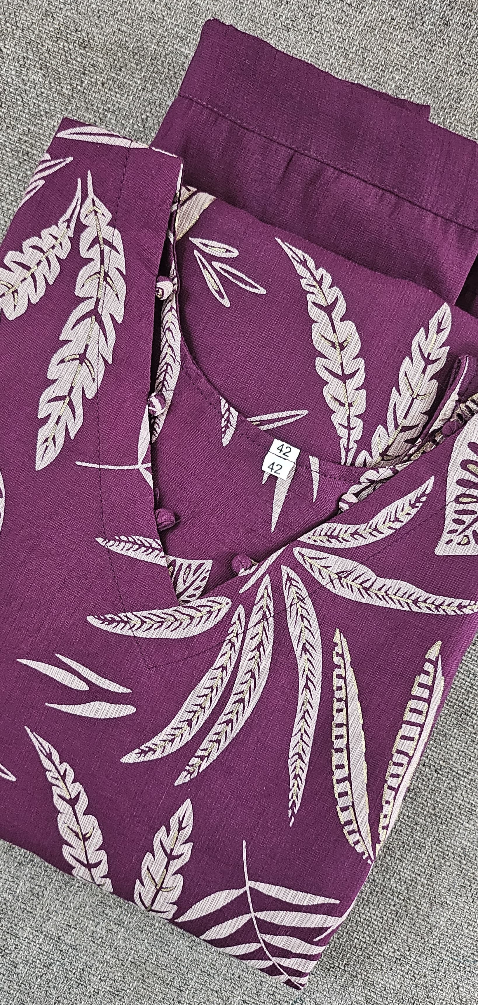 A premium pure cotton cord set in an elegant burgundy shade – sleeveless with an attached inner for effortless style.( sleeves attached)