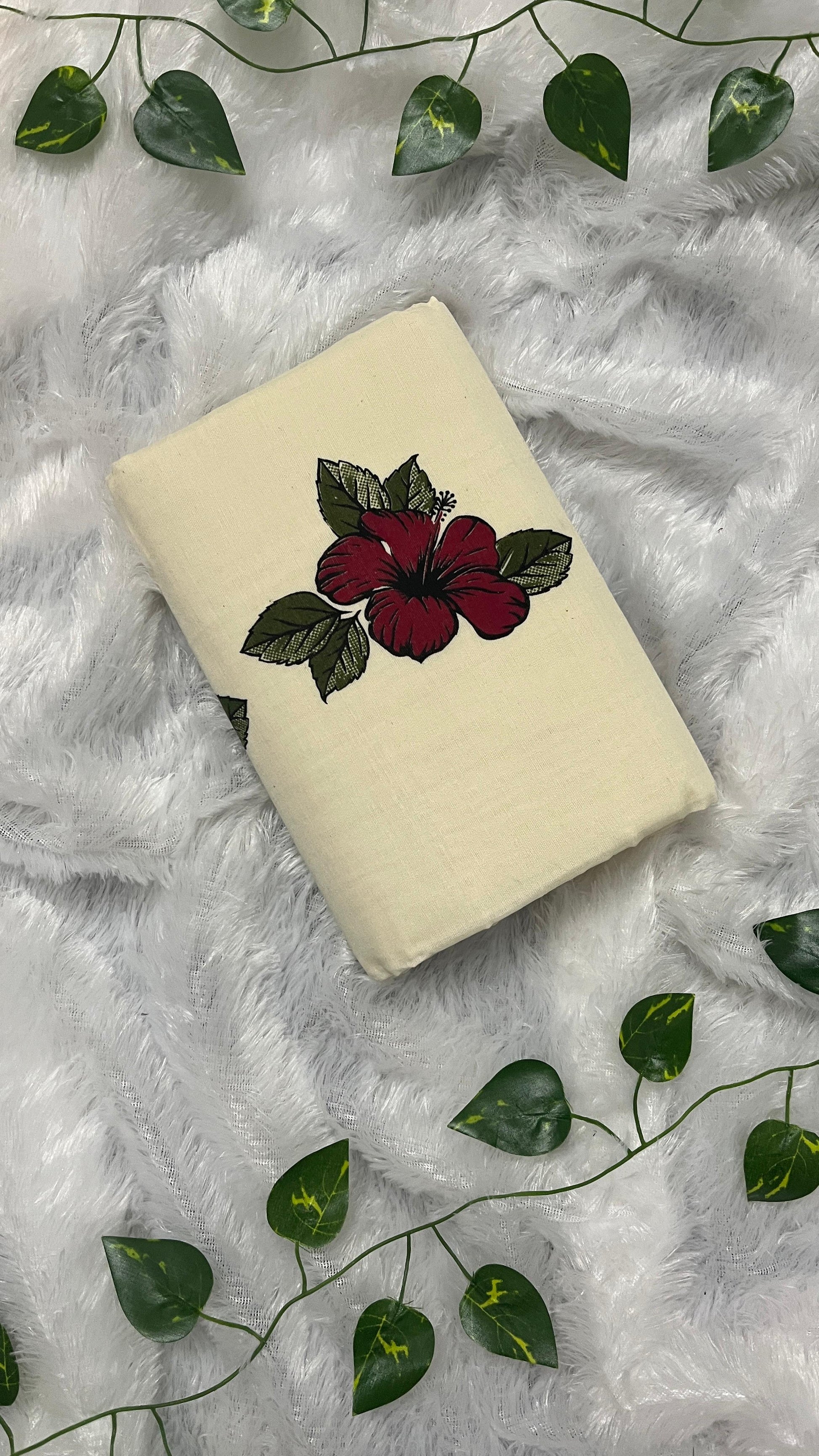 Grace meets tradition in our Chembarathi Kerala Set Mund, inspired by the timeless charm of the red hibiscus flower. Woven from premium cotton with an elegant chembarathi motif, this set mund features a vibrant red border as design that adds a festive touch.