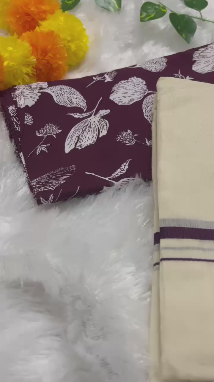 Type: Kerala Set Mundu (2-piece) with Blouse