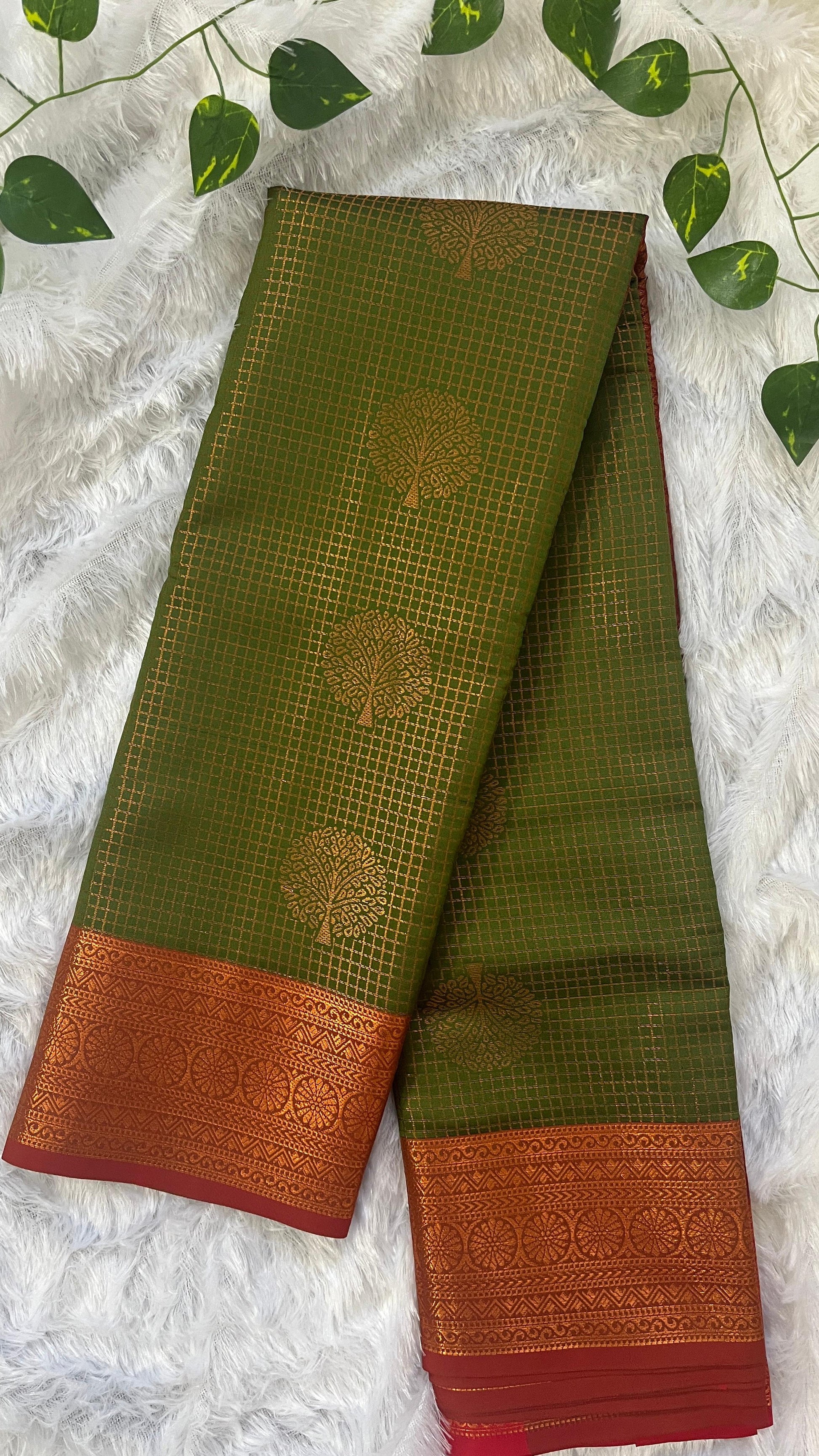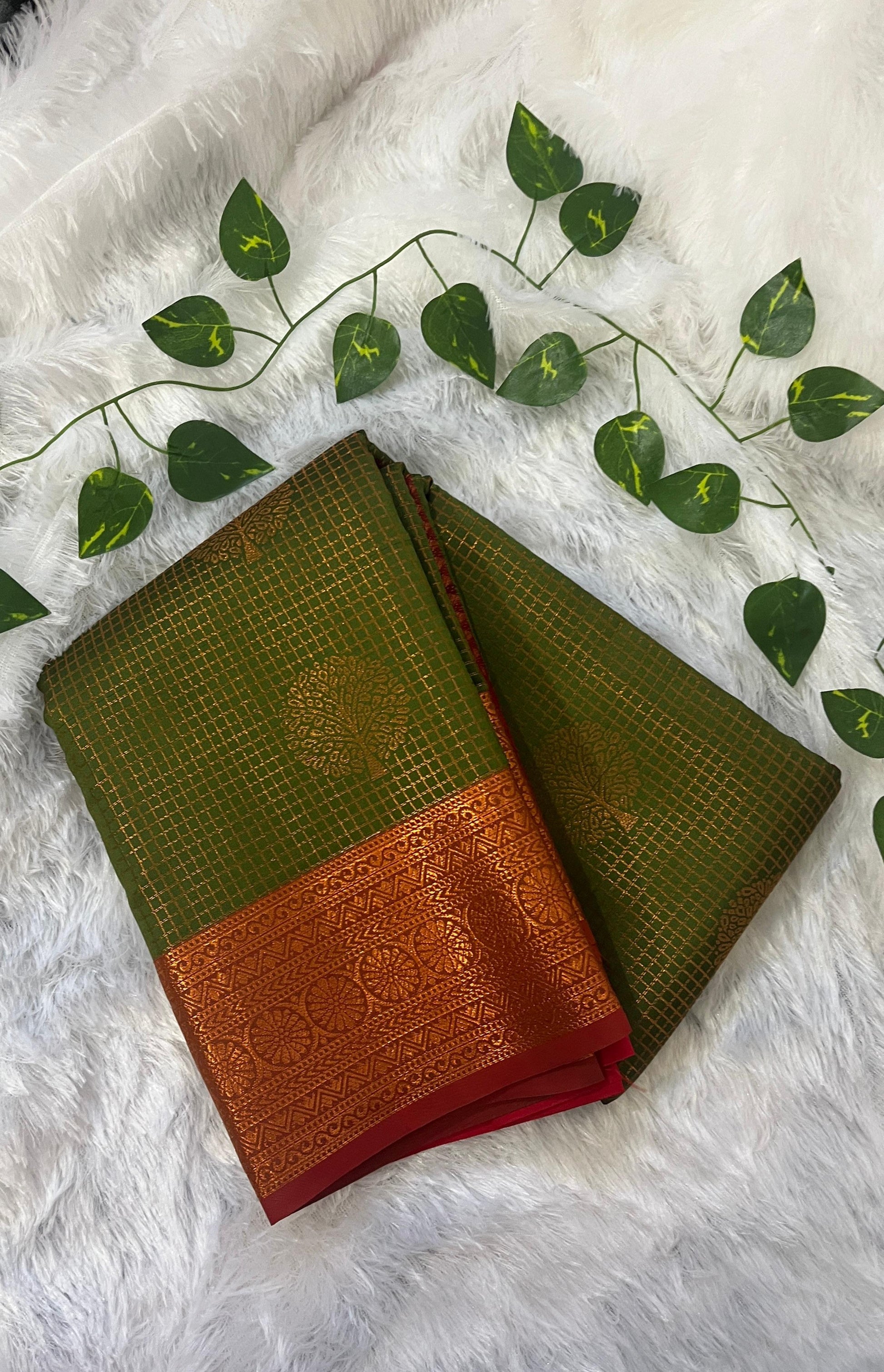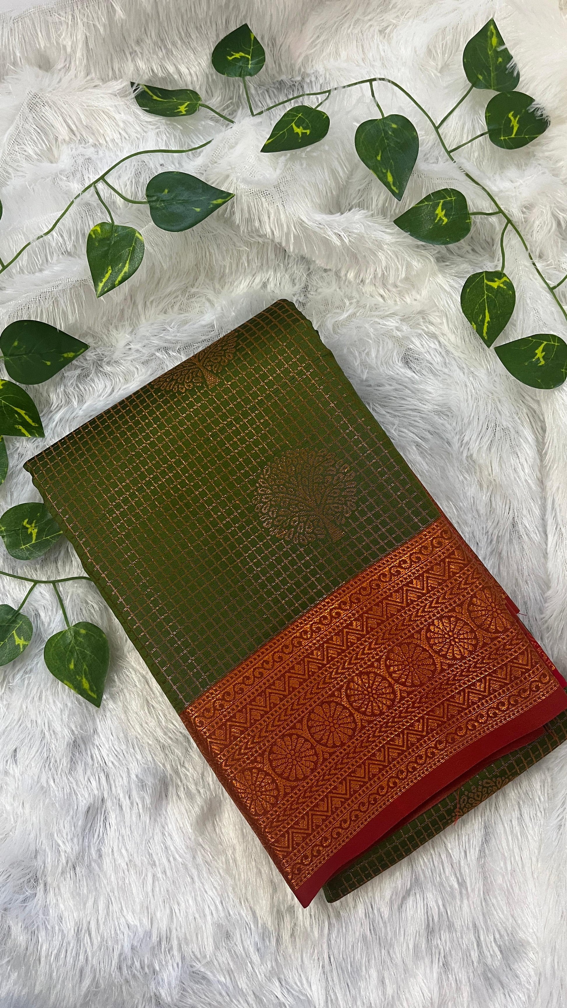 Rajamrudini – Green Semi Kanjivaram Saree with Red Border