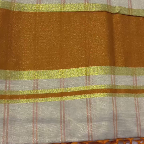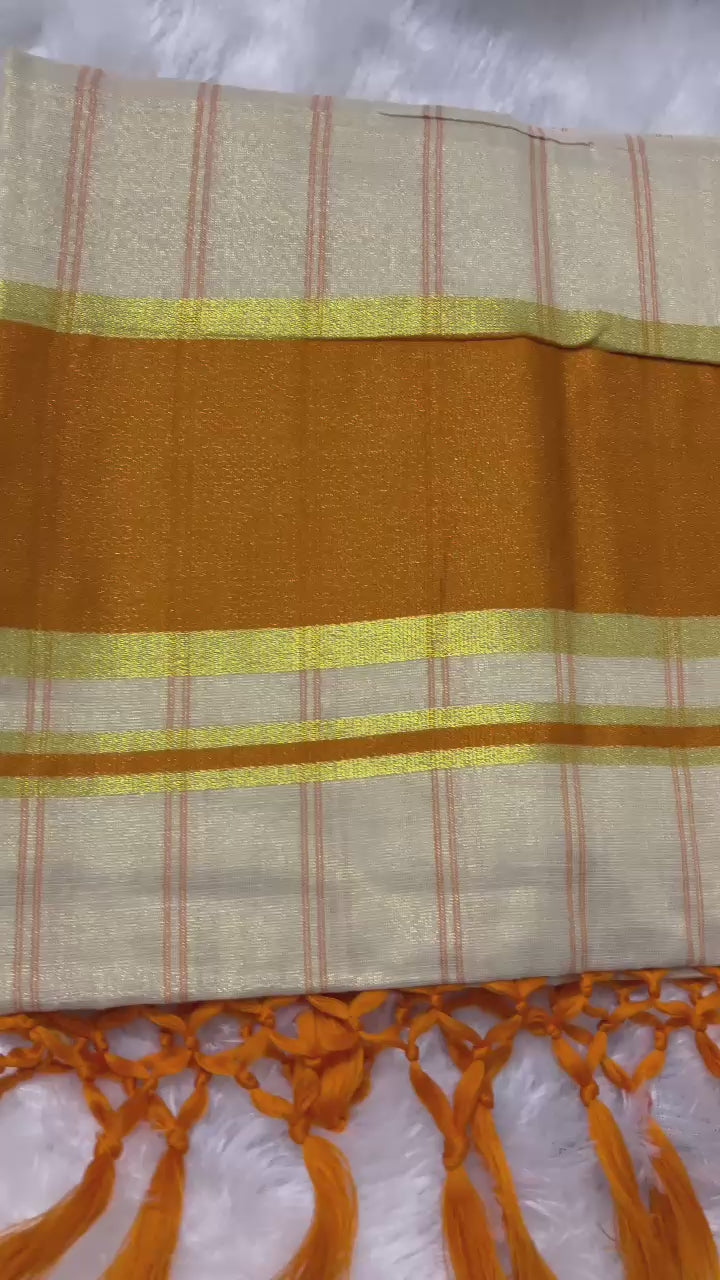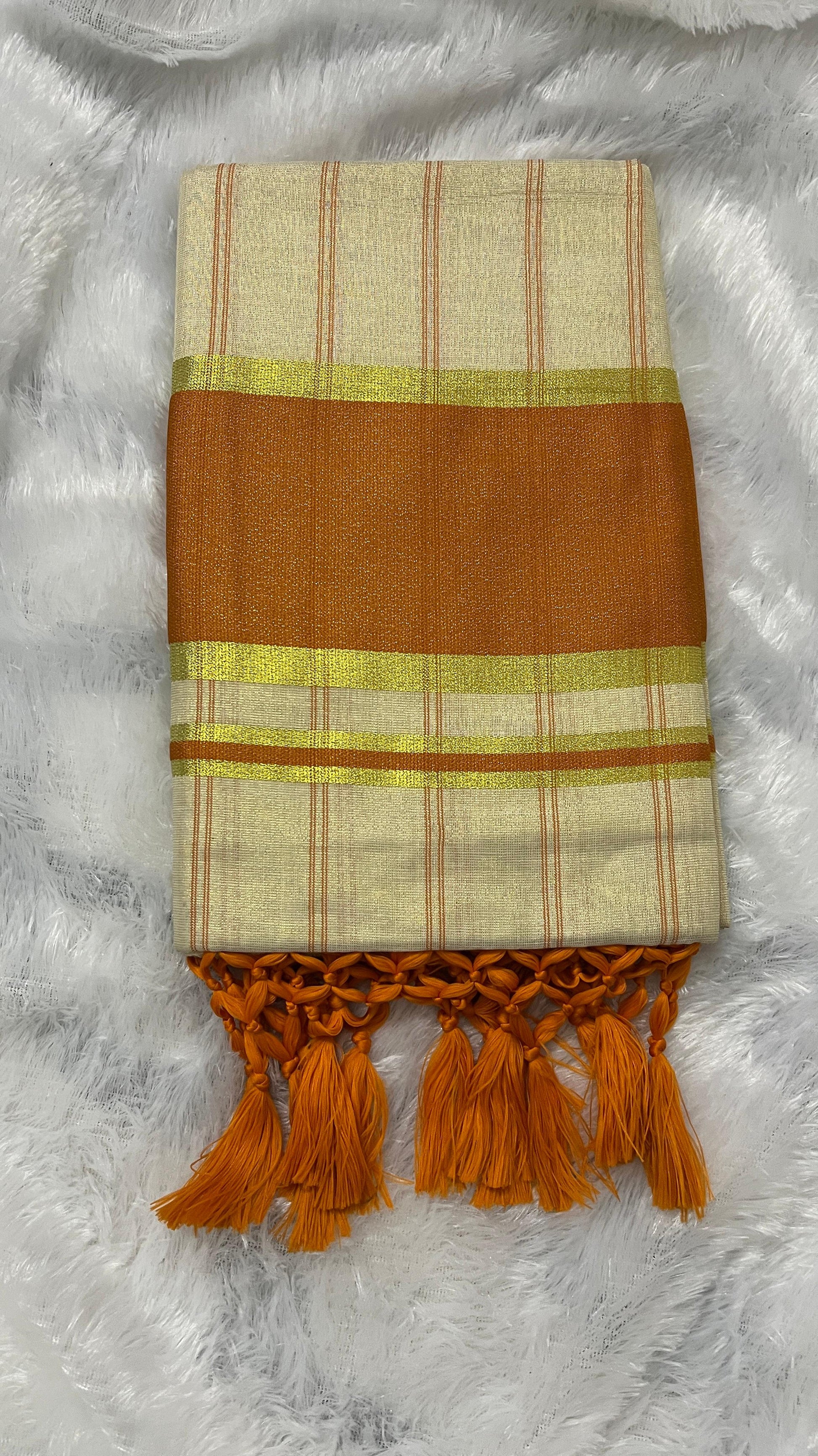 Ratna Charth – Tissue Kerala Saree (Orange Border Edition)