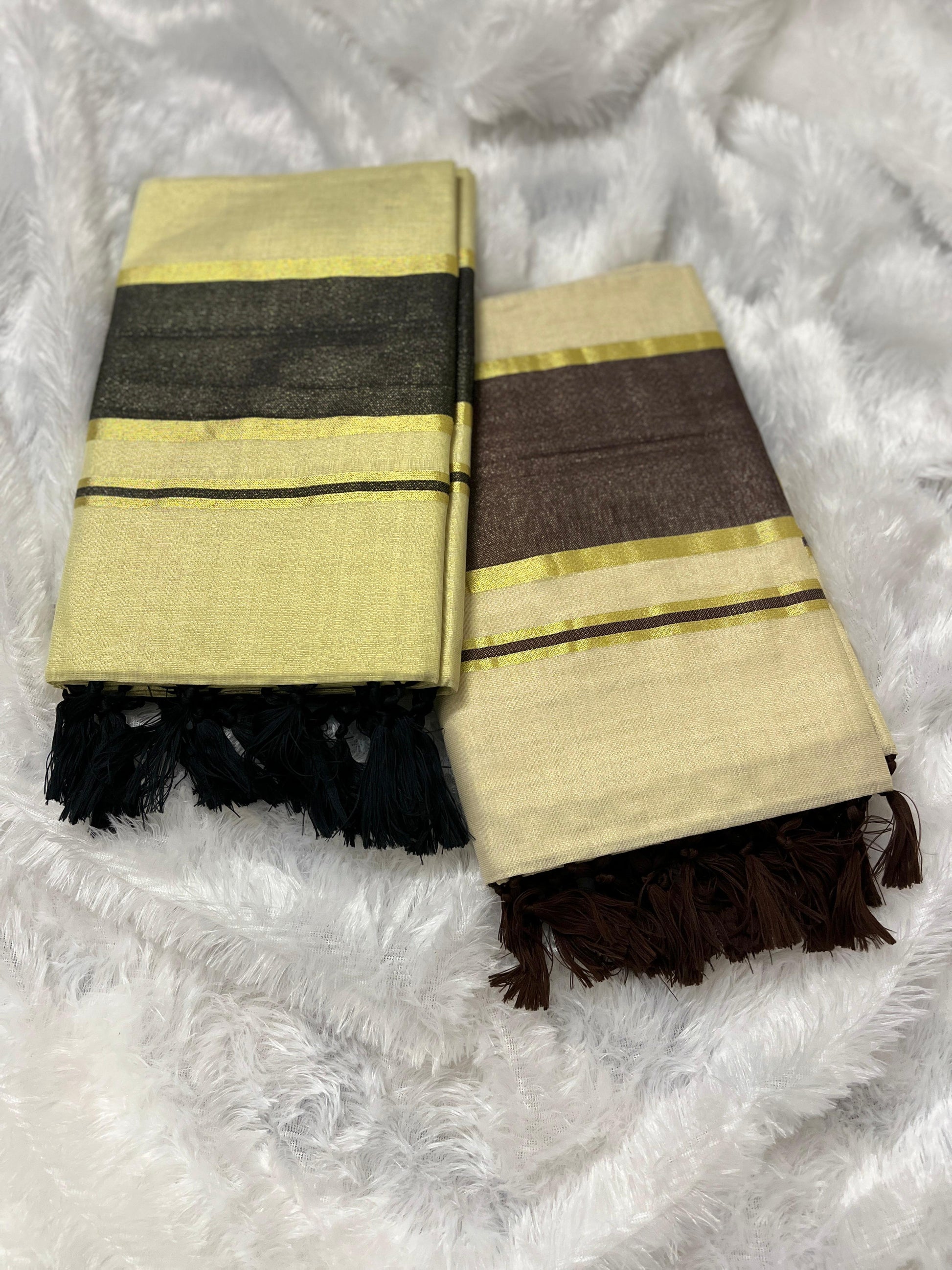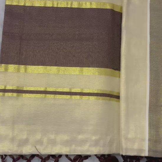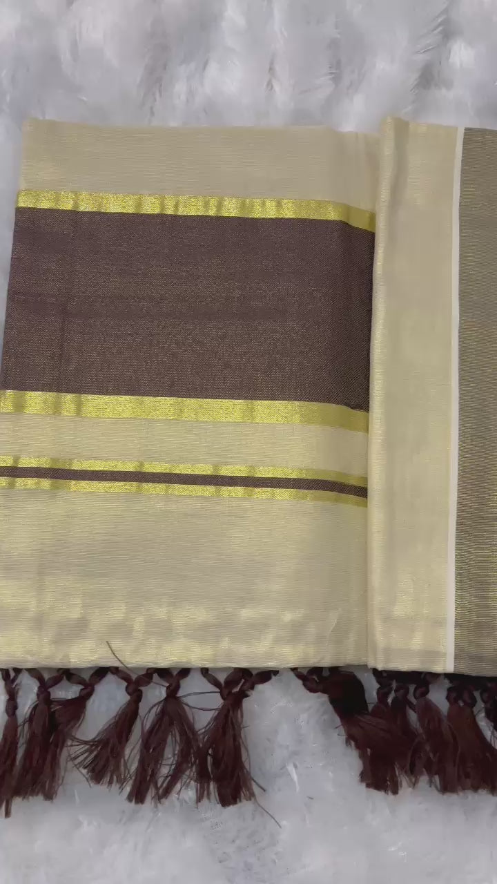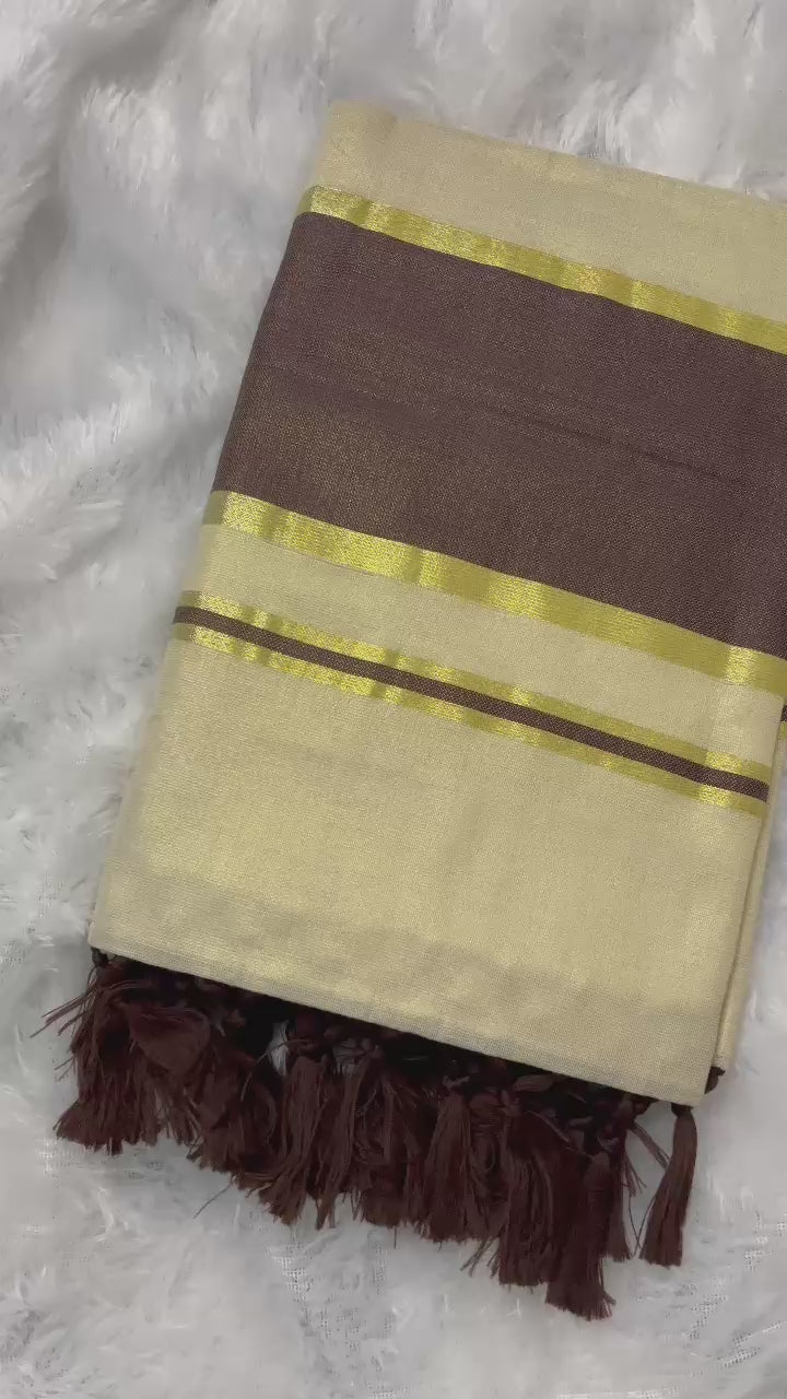 Sandhya Mayil – Tissue Kerala Saree (Brown Border Edition)